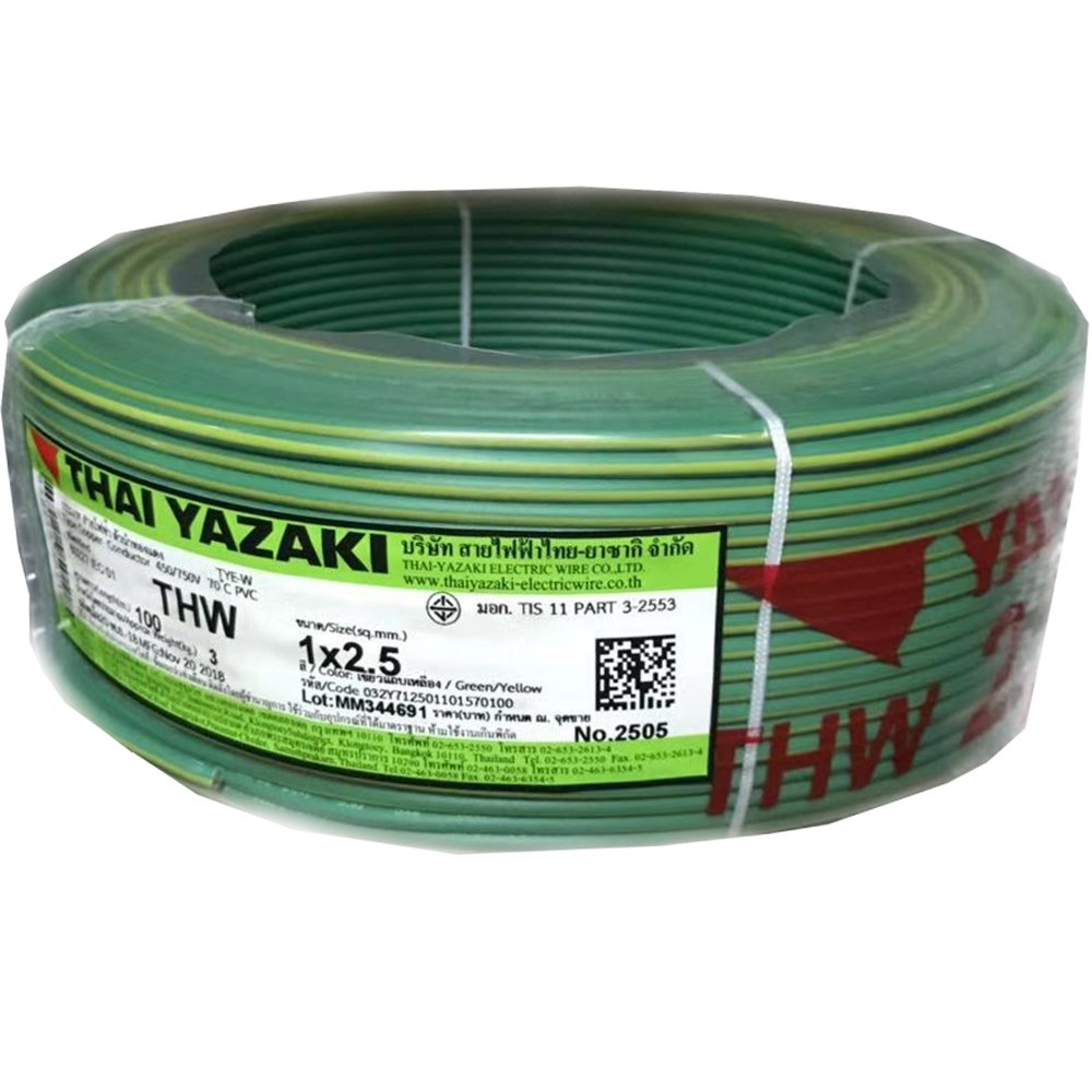 สายไฟ IEC01 THW 1x2.5 sq.mm. สีเขียว/เหลือง YAZAKI