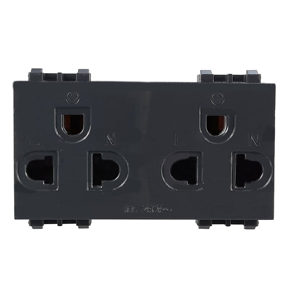 เต้ารับคู่มีกราวน์+ม่าน สีดำ ขนาด3ช่อง NANO